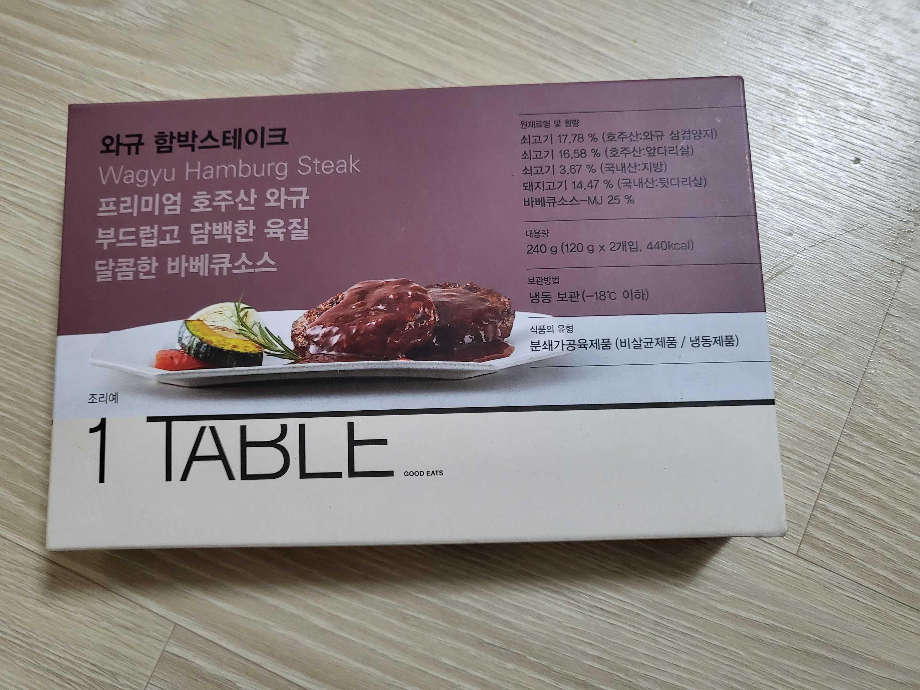 와규 함박스테이크는 다 좋은데 크기가 작아요. 계란 후라이에 얹어 먹으면 더 맛있게 먹을 수 있다 해서 먹었는데 와규 함박스테이크 단품으로는 여자, 남자 모두 양이 안차요. 한 박스에 두 개가 들었으니 만약에 1인 가구라면 두 장 모두 조리해서 배부르게 드시는 걸 추천해요. 저는 남편과 각각 한 장씩 먹고 집에 있는 반찬과 곁들여 먹었어요. 정가가 7,500원인데 제 값 주고 주문하는 건 아깝긴 합니다.