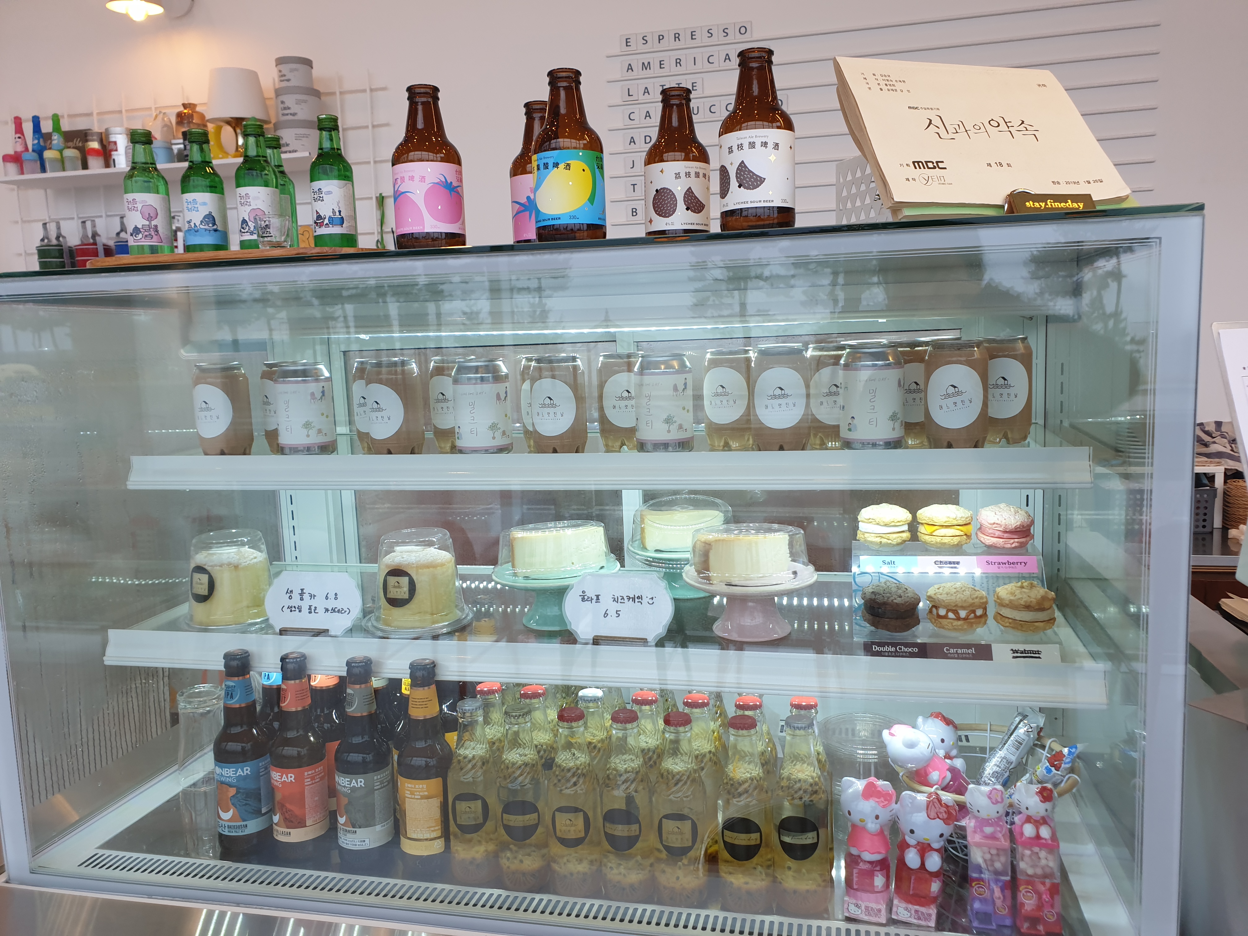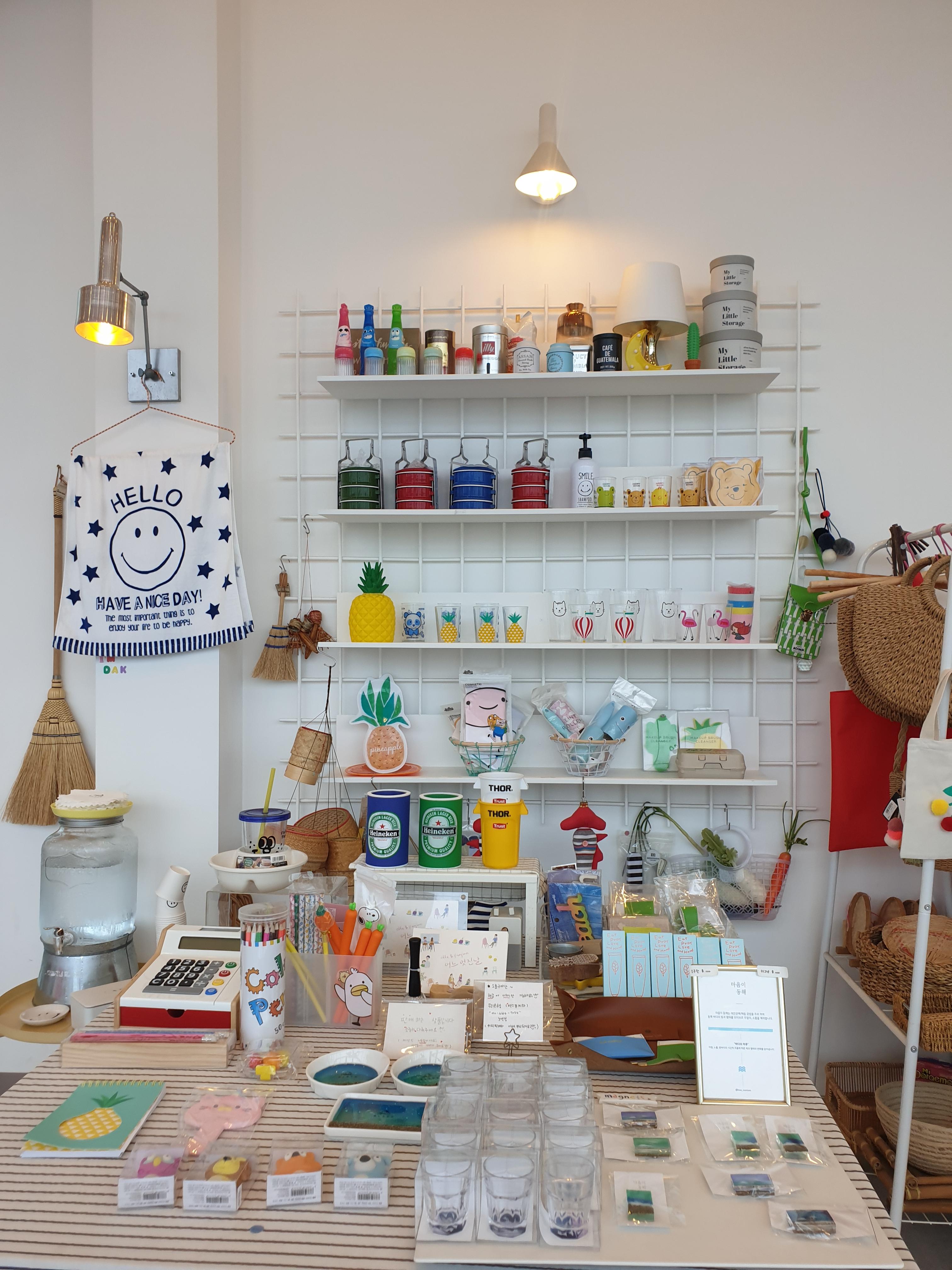 카운터 바로 옆에는 굿즈를 판매하는데요. 동해바다 마그넷도 판매하고, 사실 굳이 강원도에서 사지 않아도 되는 물품들도 판매하네요. 현금 결제와 계좌 이체만 가능하다는데 오잉? 했어요ㅎㅎ 매장 분위기와 잘 맞는 굿즈 코너이긴 했습니다.