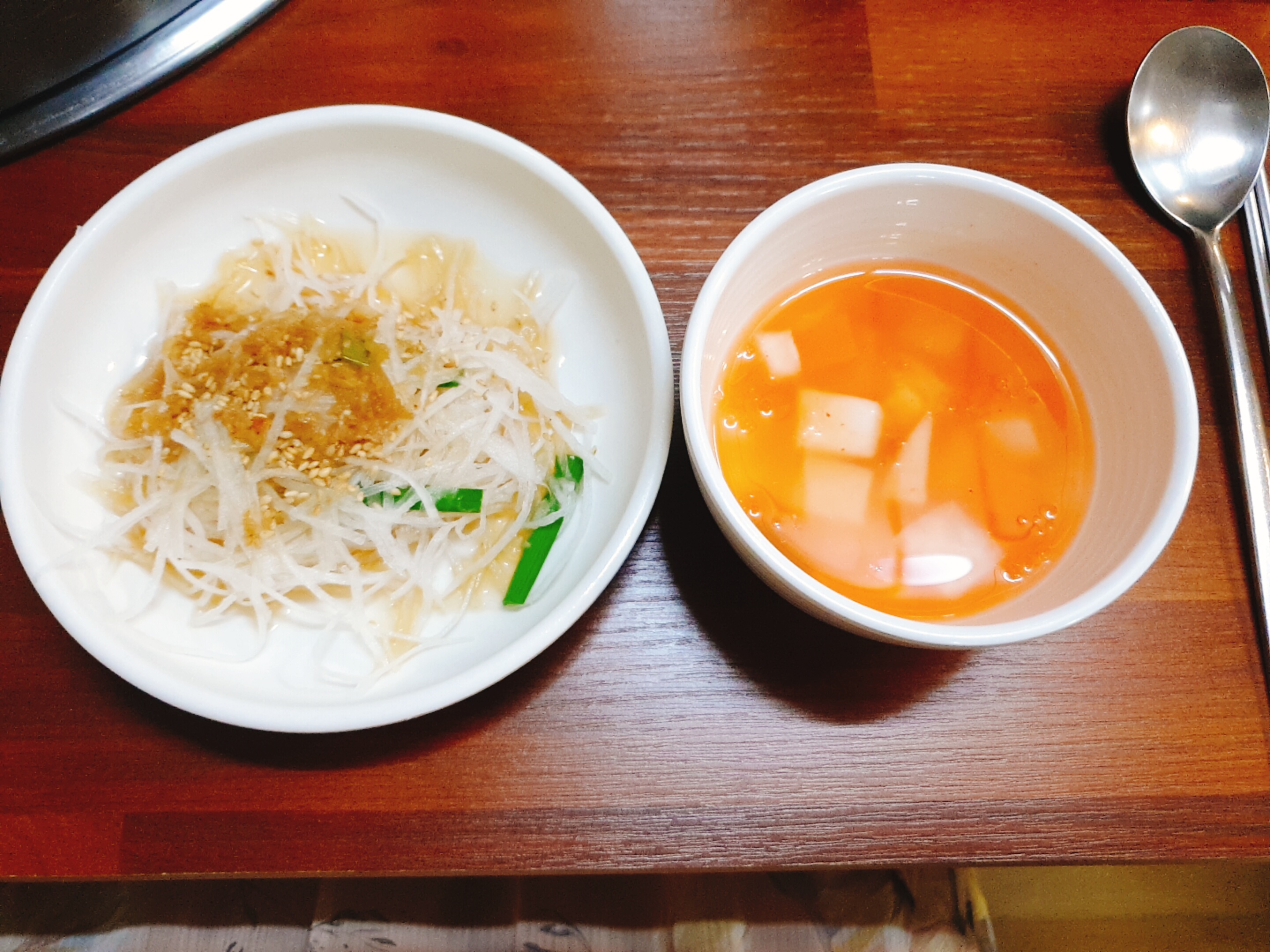 매콤한 닭갈비에 어울리는 시원하고 달달한 동치미 국물과 닭갈비와 곁들여 먹으면 좋은 양파소스가 나왔네요. 남자친구는 양파소스랑 닭갈비와의 조합이 별로라고 하더라고요. 호불호가 갈리는 맛이긴 합니다.