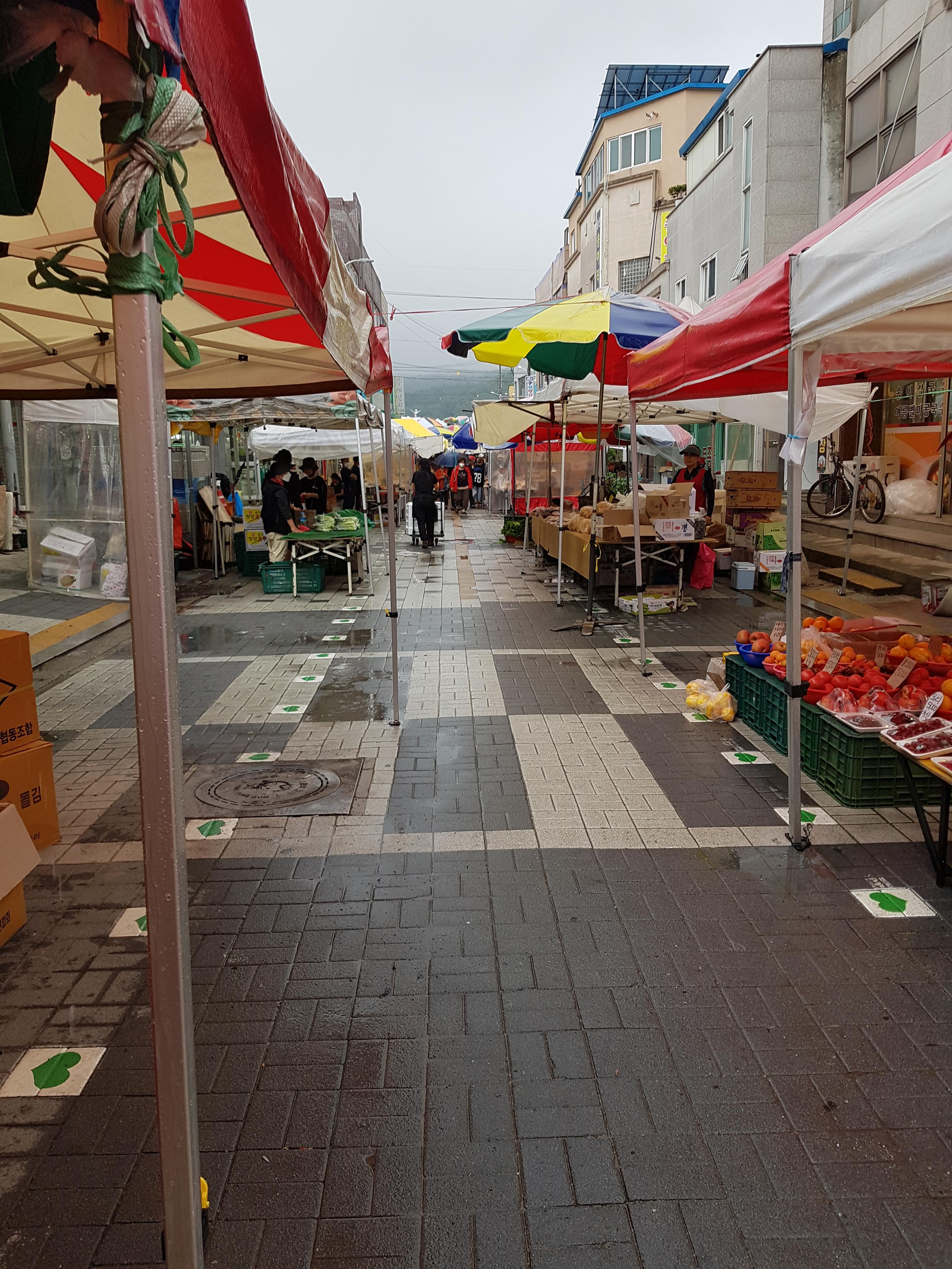2-3시 정도 된 시간인데, 장이 오전 6시부터 서기 때문에 벌써부터 철수한 야외 판매장도 있었답니다. 특히, 이 날은 추적추적 비가 내리다가도 무서운 장대비가 쏟아지기도 한 날이라 사람이 그나마 덜 했을 거에요. 야외는 파라솔이 설치되어 있긴 했지만 통행하기에는 우산이 필수라서 불편하긴 합니다.