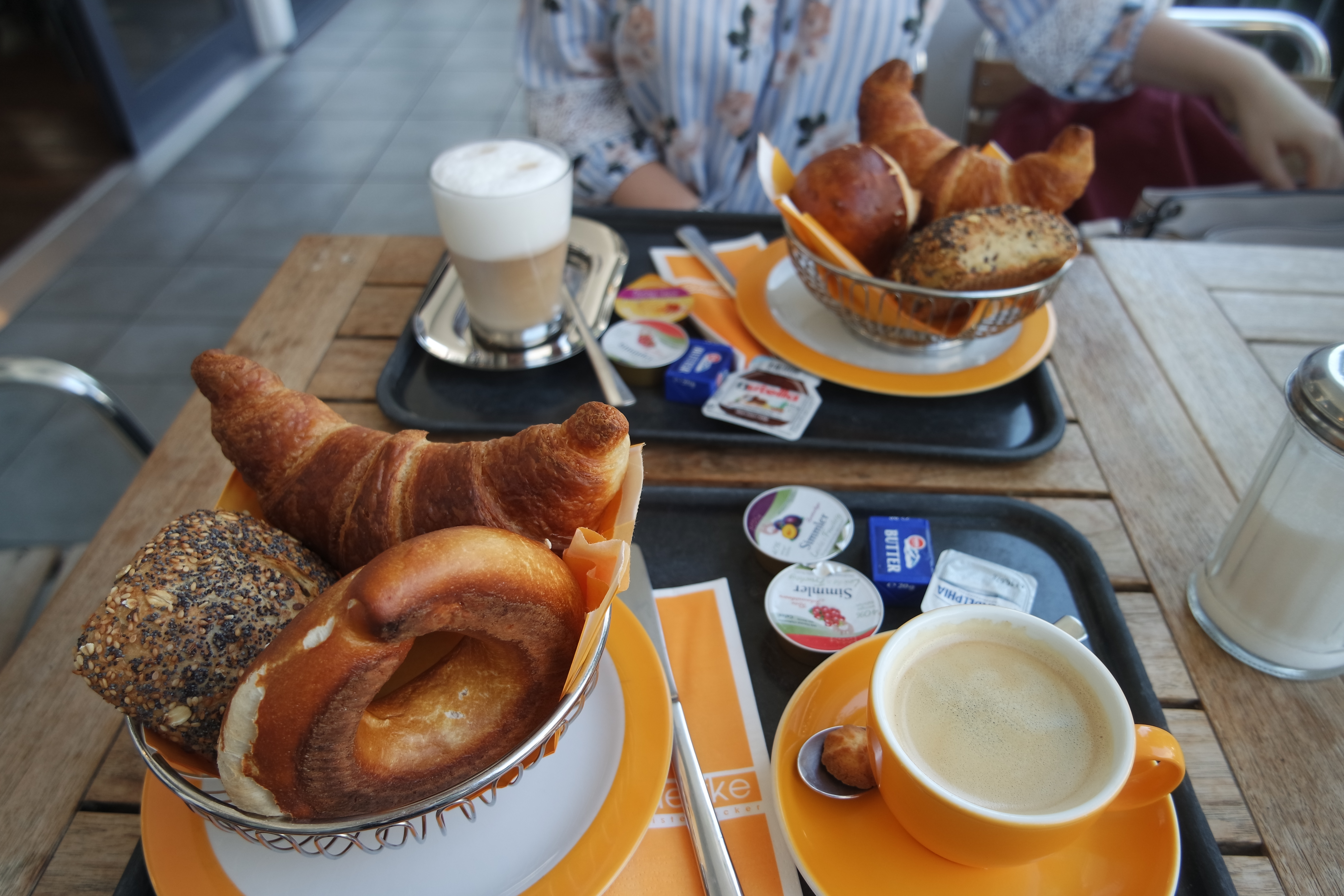종종 갔던던 Padeffke에 가서 먹은 브런치 세트. 독일 특유의 딱딱한 브레첸, 프레첼, 크로와상 구성이었다. 딸려오는 버터, 크림치즈, 잼이랑 같이 먹으면 너무너무너무 맛있다. 결국 다는 못먹고 하나는 포장해서는 돌아다녔다. 이때까지만 해도 제니가 시험 준비에 인턴 생활을 하고 있었는데 최근에 준비했던 시험에 합격했다는 소식을 들어서 곧 한국에 놀러오지 않을까 싶다! 코로나 끝나면.