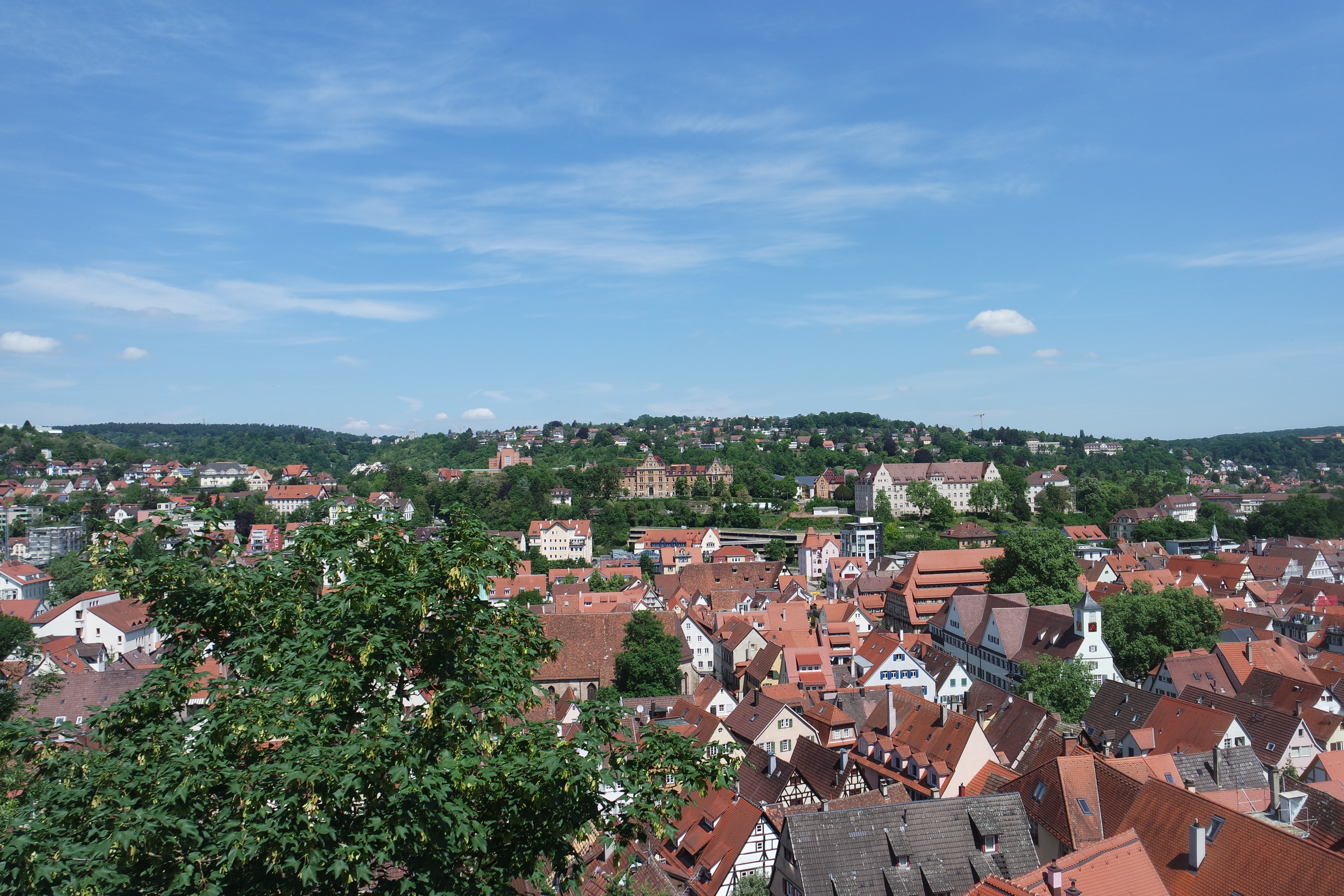 튀빙엔 북쪽은 구시가지로 현대식 건물이 없기 때문에 성에서 바라보면 탁트인 갈색 삼각 지붕의 향연을 볼 수 있다. 남쪽은 신시가지로 거주지가 대부분이라 슬슬 건물 몇 개가 올라가고 있는 중이었다. 그래도 거슬리는 높이의 빌딩은 없는 편이다.