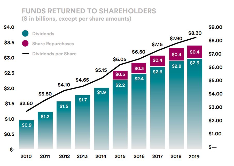 2020년 6월 29일에는 1주당 1.3불의 배당을 지급한다는 발표가 있었는데요. 지속적으로 증가하여 1주당 2.1불을 지급하던 배당이 1.3불로 삭감되었습니다. 보잉과 디즈니는 당분간 배당 지급을 중지했는데 그나마 다행이라고 생각해야 할까요..ㅎㅎ 하지만, 대표적인 리츠 배당주인 리얼리티 인컴이 배당 삭감 없이 배당을 지급한다는 소식보다는 아쉬운 소식입니다. 배당이 더 삭감될 수도 있지요.