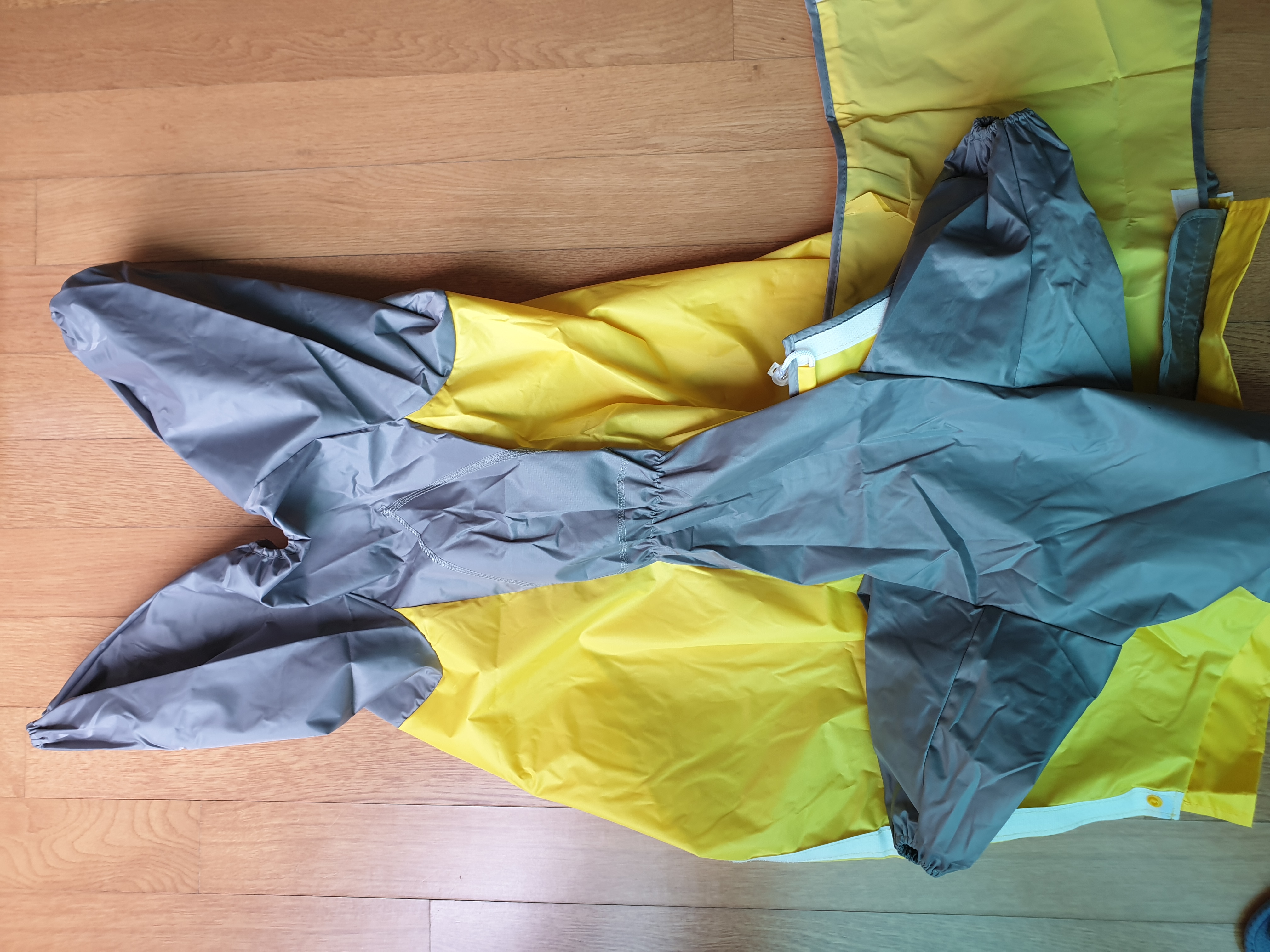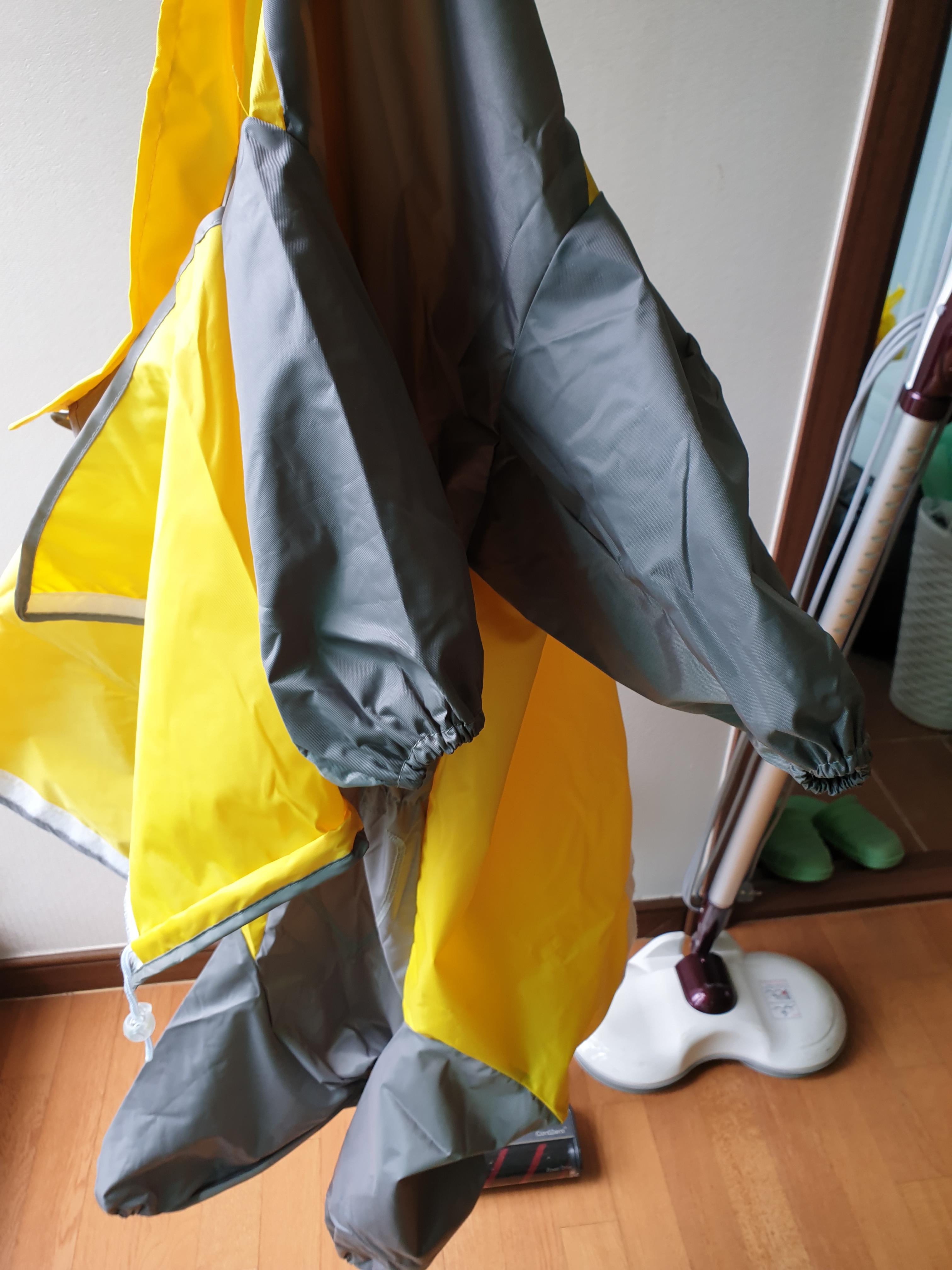 그래서 두 번째 우비를 구매했습니다. 이번에는 사이즈를 직접 재서 구매한 제품인데요. 첫번째 제품과 달리 배를 다 가릴 수 있고 발까지 철통 보안 가능한 우비였어요. (배를 가리는 우비를 산 이유는 여름철이라 진드기가 붙을 확률을 최소화하고자 함이었습니다.)