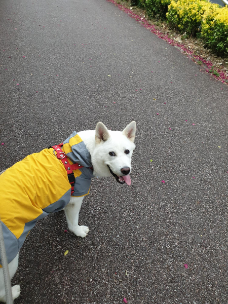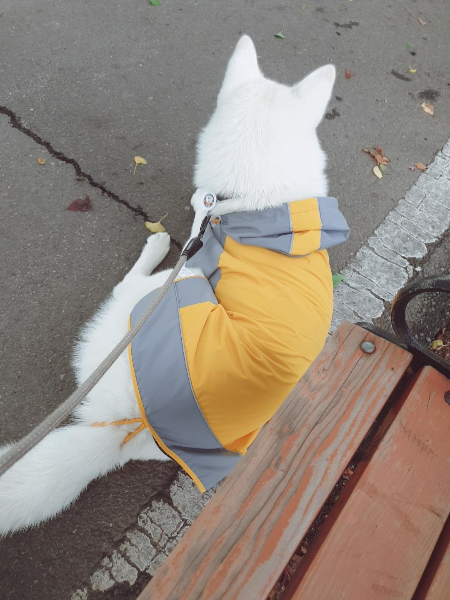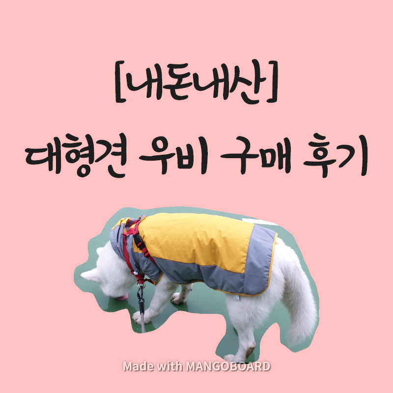 문제는 우비 사이즈였어요. 대형견 전용 쇼핑몰이라 우리 강아지가 제일 큰 사이즈는 아니겠지 생각하고, 두번째로 큰 사이즈를 샀습니다. 강아지 신체 사이즈를 재지 않은게 화근이였죠.