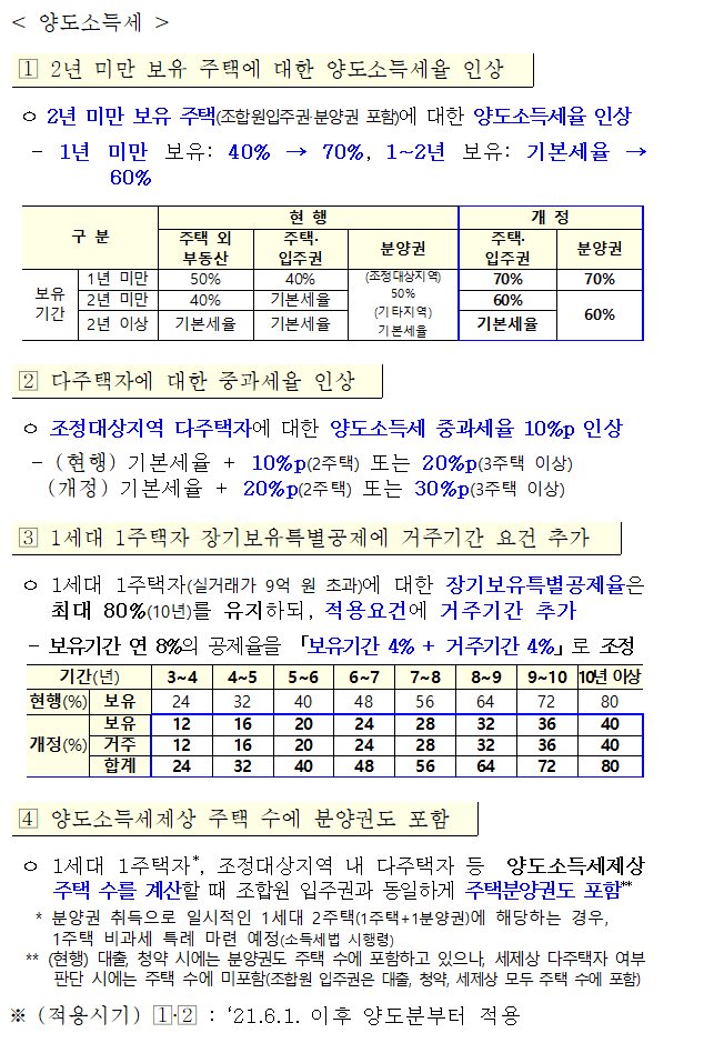 위 내용은 종합부동산세와 양도소득세 관련 세법 개정안 전문입니다.