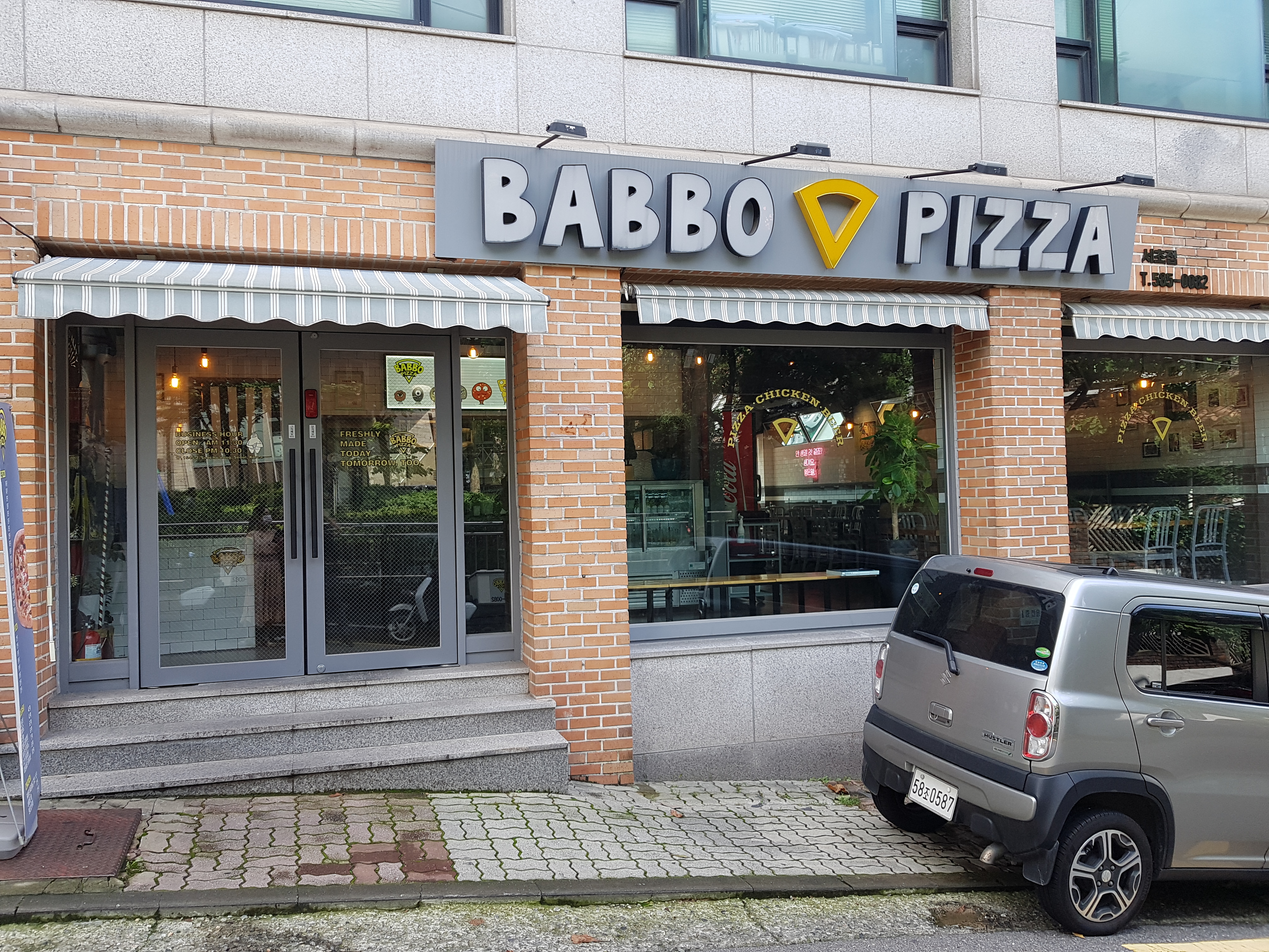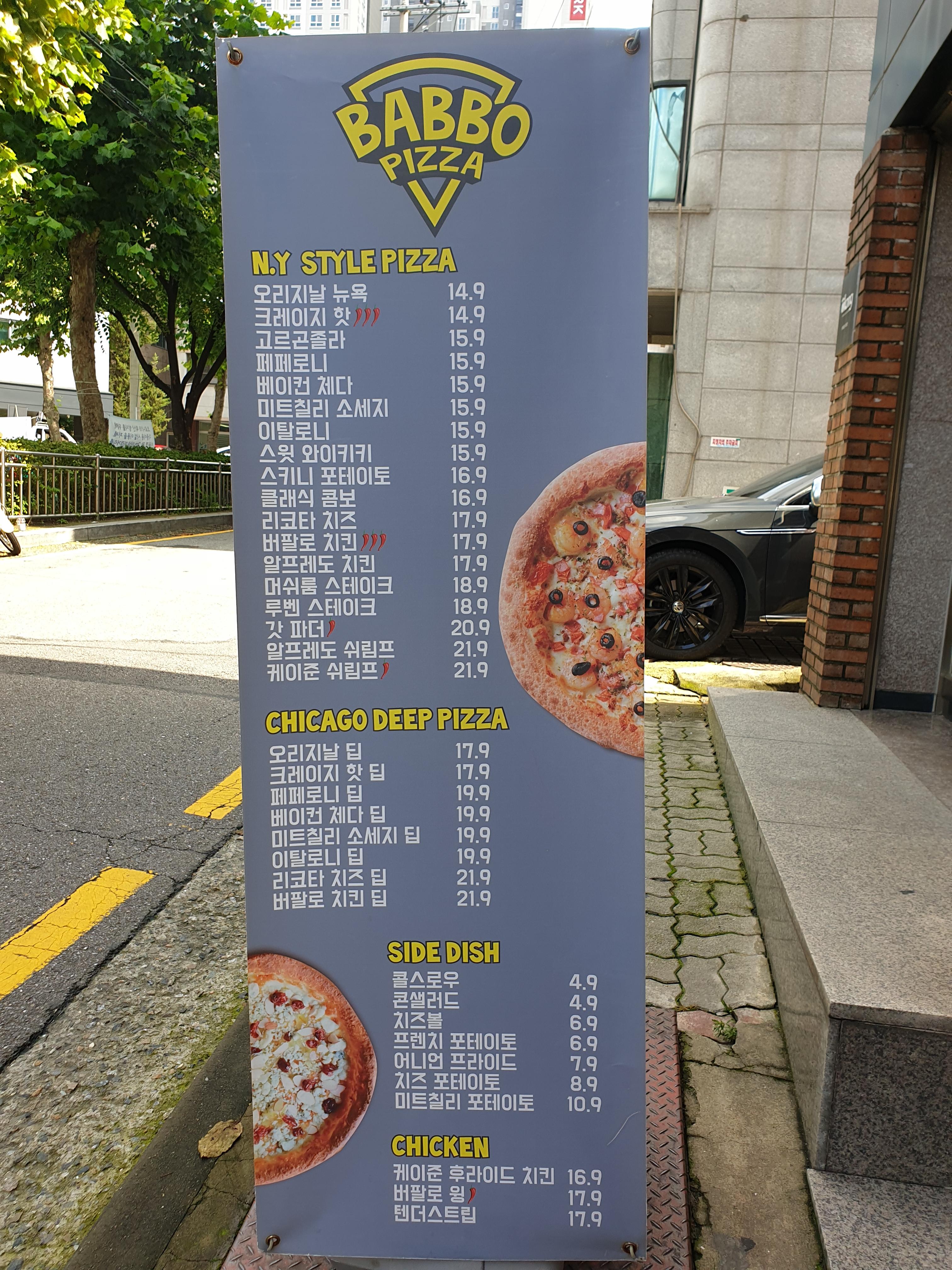 치즈앤도우는 피자 크기가 커서 두 명이서는 다소 무리이기 때문에 밥보피자로 향했습니다. 조각피자를 팔긴 하지만 갓 나온 따뜻한 조각은 아니기 때문에 덜 맛있다는 도리의 의견!