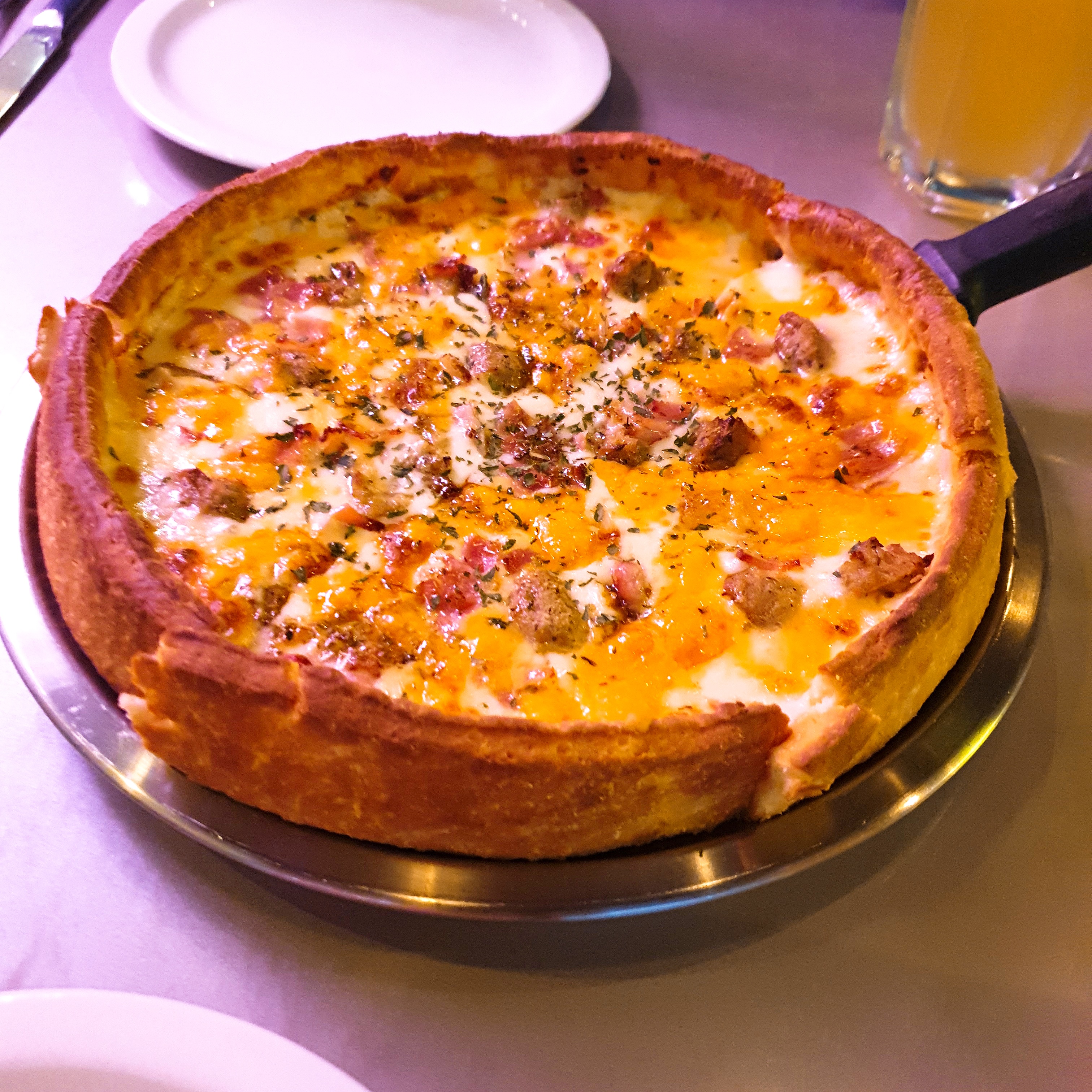 그때는 베이컨체다 시카고 피자를 먹었네요. 지름은 뉴욕 피자보다 작지만, 치즈 폭탄이라 매우 배불렀던 걸로 기억합니다.