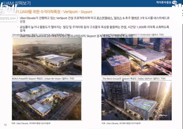 우버 에어 협력사 중 부동산 회사 힐 우드는 버티포트를 개발하고 있기도 하다. 2023년도에 LA, 달라스, 호주 멜버른을 테스트 베드로 선정하고 있다.