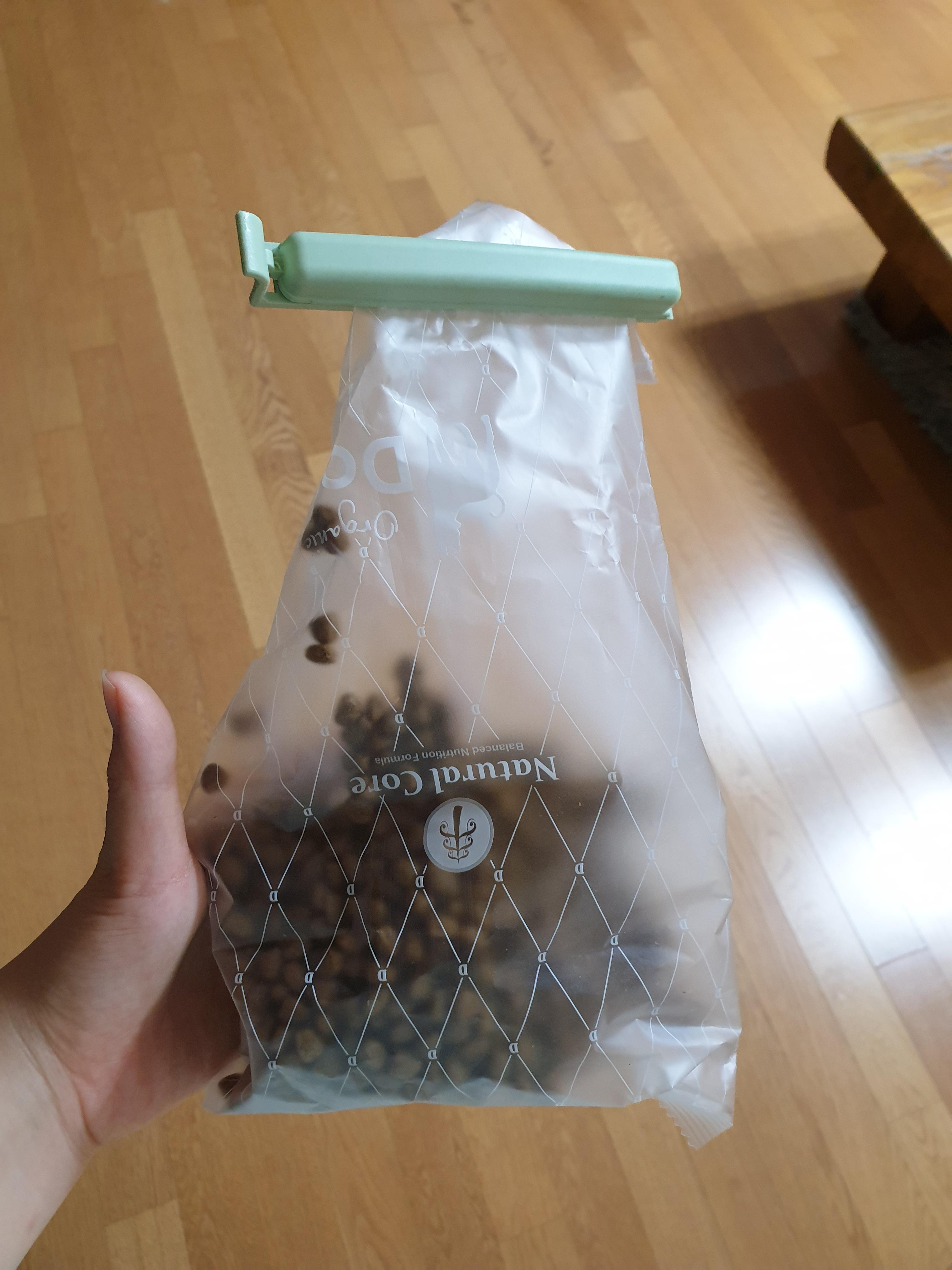 먹는게 영 시원치 않으니 간식을 많이 주게 되었고, 사료를 무엇으로 바꿔줄까 고민했을 때 저희 집은 코스트코에서 판매하는 네츄럴코어 치킨 앤 살몬 사료를 구입했습니다. 맛이 달라지면 좀 더 식사에 흥미가 생길까 해서 바꿔주었습니다. 네츄럴코어의 장점은 소분이 되어 있어서 보관이 참 쉽다는 점에서 맘에 들었었어요.