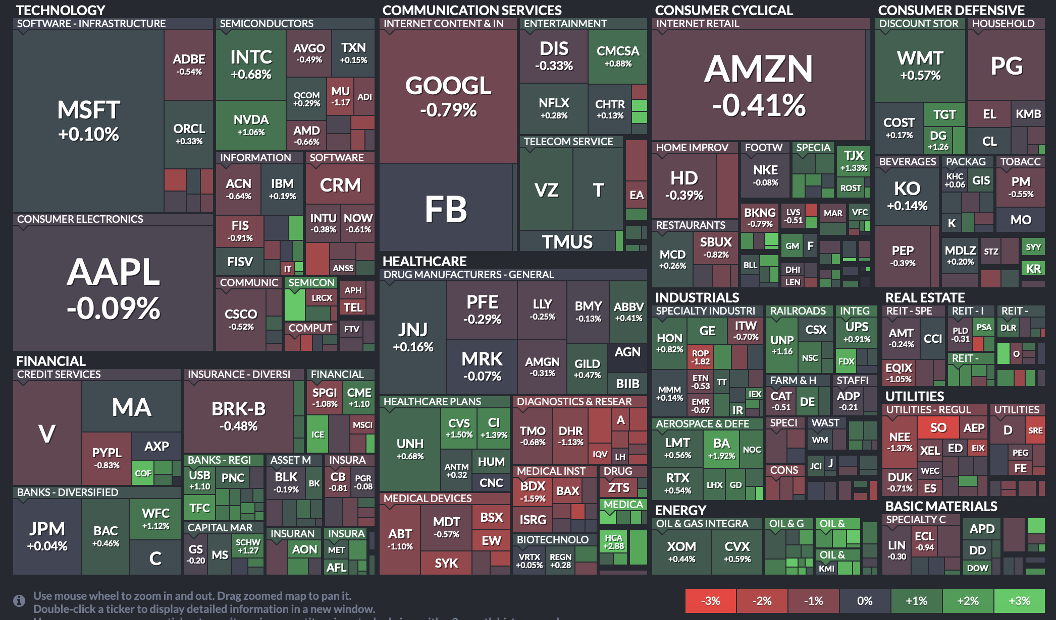 위 이미지는 미국 주식을 하시는 분들이라면 한 번쯤은 보셨을 법한 이미지인데요. 미국 주식 시장의 종목별 비중과 등락률을 한눈에 볼 수 있는 유용한 자료입니다. finviz라는 사이트에서 map 카테고리에 들어가시면 보실 수 있는 화면이지요.
