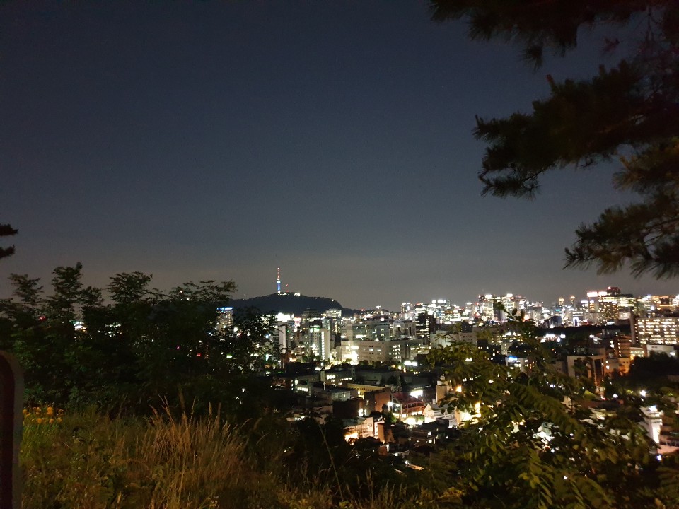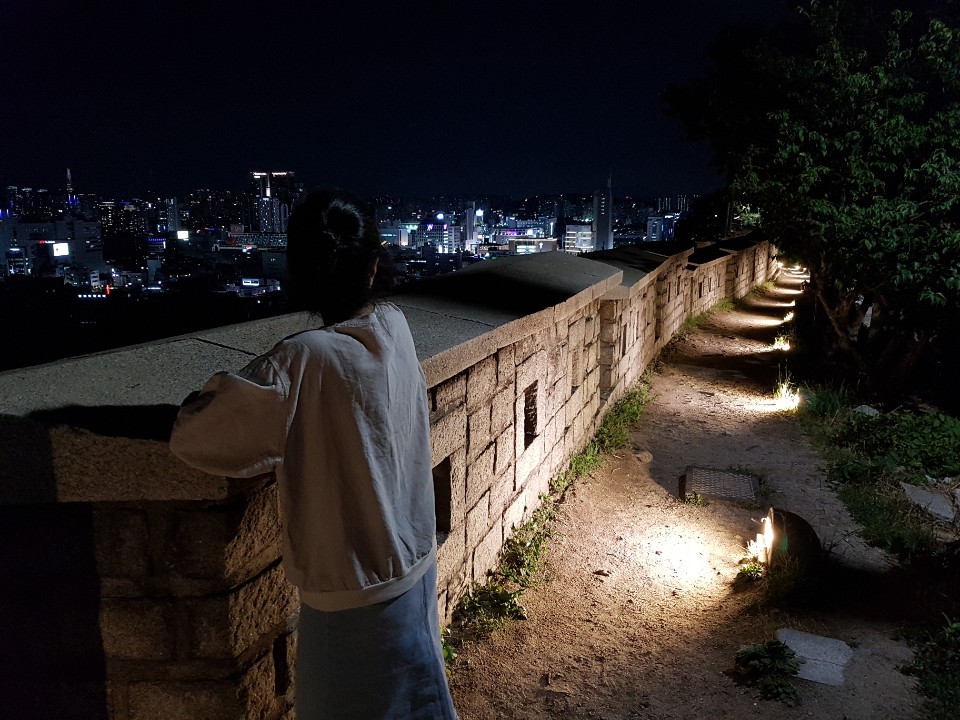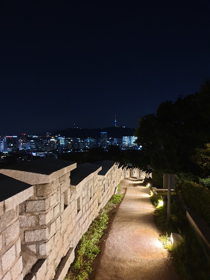 그렇게 잠시 쉬고나서 저희는 다시 발걸음을 옮겼습니다. 마지막 목적지인 동대문역 방면으로 능선따라 내리막길을 걸어 내려갔습니다. 성곽길은 외국인들에게도 한국의 아름다움을 잘 보여줄 수 있는 관광지가 아닐까 하는 생각이 들었습니다. 예전에 대만에 사는 친구가 한국에 놀러왔을 때 동대문역에서 내려 초입 부근에서 사진만 찍고 멀리 보이는 성곽길을 소개해 준 적이 있었는데 저녁에 성곽길로 데리고 오지 못한 게 후회스럽더군요...ㅠㅠ