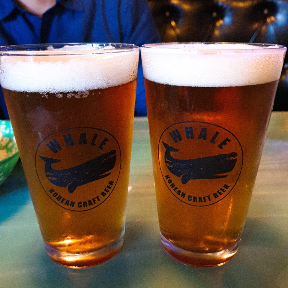 맛있는 바베큐에 맥주가 빠질 수 없겠죠? 가게의 대표 맥주인 고래 맥주 두 잔을 시켰습니다~ 개인적으로 쌉싸름한 맛의 맥주를 좋아하는데요, 고래 맥주가 과일향이 은은하게 나면서 쌉싸름한 특유의 끝 맛이 함께 먹는 고기의 풍미를 살리는 역할을 톡톡히 하더라구요^^