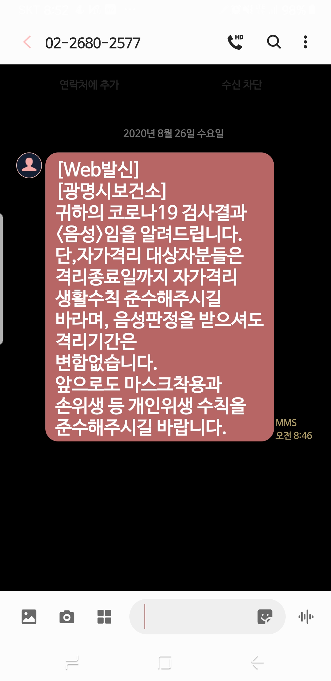 요즘 비를 맞으면서 강아지랑 뛰기도 했고, 더운 날에 유산소운동을 하겠다고 러닝을 해서 그런거 같기도 하고, 며칠 동안 에어컨을 직빵으로 맞으며 잠을 자서 그런게 아닐까 싶기도 했지만 코로나 감염 의심은 계속해서 들었어요. 아닐 확률이 95%였지만 요즘 깜깜이 감염도 많이 생겨서 5%의 확률이 있을지도 모른다는 생각에 아침에 광명시 보건소에 전화를 걸어봤습니다.