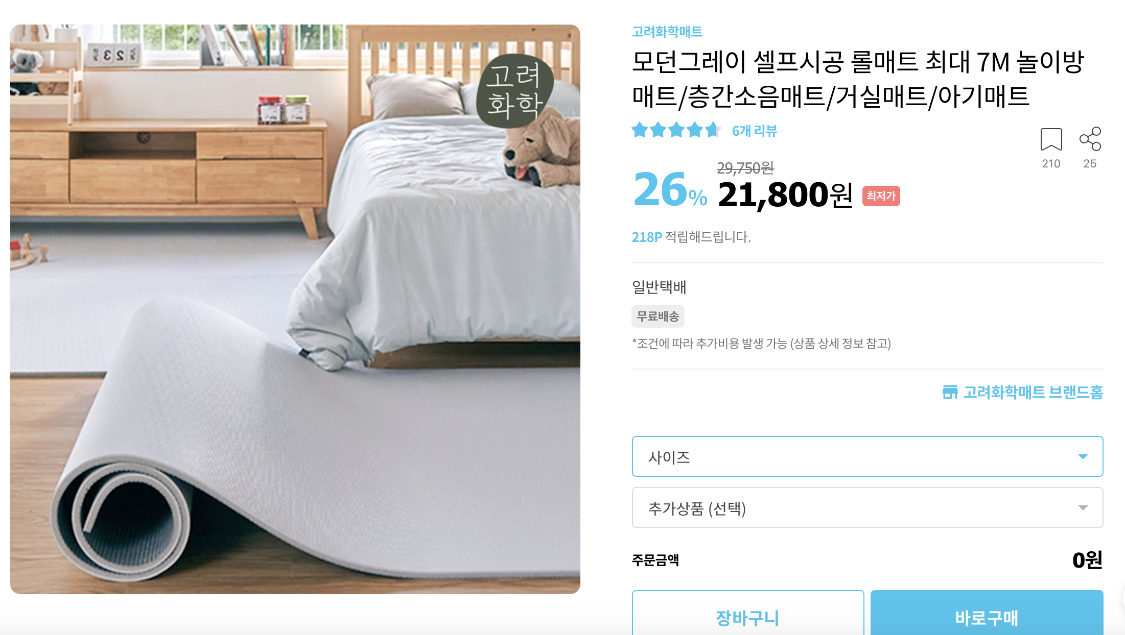 오늘의 집에서 신규회원 2만원 할인+고려화학매트 자체 할인으로 제일 저렴하게 구매하였습니다.