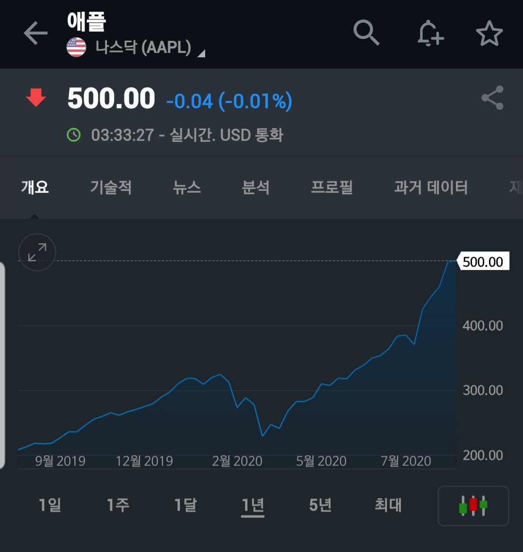 169불에 샀던 애플은 현재 500불을 달성하고 액면분할을 앞두고 있구요.